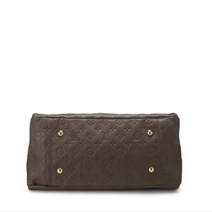 This is a Louis Vuitton Artsy MM hobo bag in brown Monogram Empreinte leather. It features an ornate, hand-braided handle and a removable key ring charm. The bag has a spacious interior with multiple pockets and protective feet on the base.