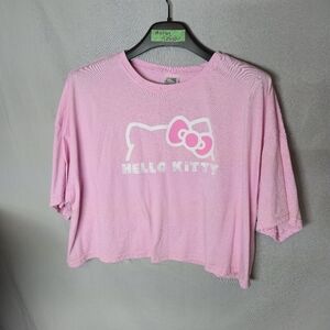 Hello Kitty Pink Cropped Tee Shirt Size Ladies XL