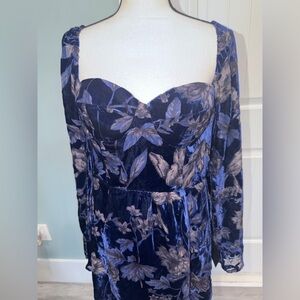 Lulus Simply Decadent Navy Floral Velvet Burnout Bustier Minu Dress size XL NWT