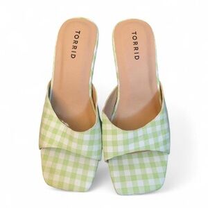 NWT Torrid Light Green Gingham Square Toe Mules | 8.5 WW