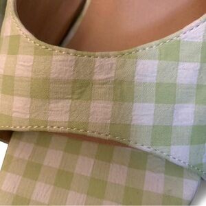 Elevate your warm-weather style with these adorable, brand new with tags (NWT) Torrid mules! These chic slip-on heels feature a vibrant light green and white gingham print that’s perfect for spring and summer outfits.
