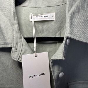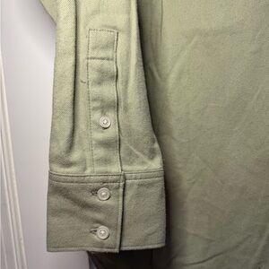 Modern shirt jacket. Features buttoned front and dual chest pockets. Perfect for layering.