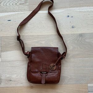 Stylish brown leather crossbody bag perfect for everyday use. Durable and versatile, ideal for keeping essentials close at hand.