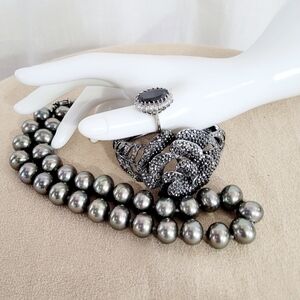 This silver and black ring is a stunning addition to any jewelry collection. Its sleek design and classic colors make it perfect for any occasion.