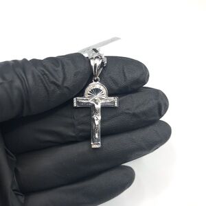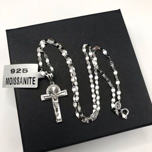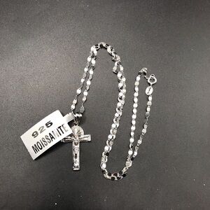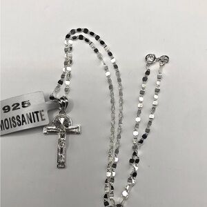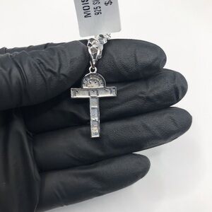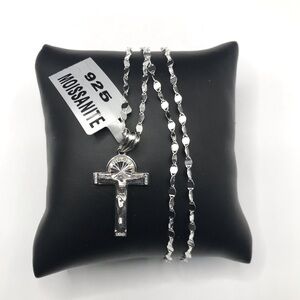 925 Sterling Silver 0.40CT MOISSANITE Cross Pendant Necklace size 18”