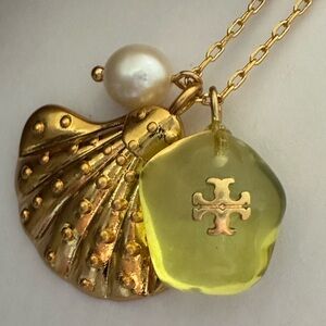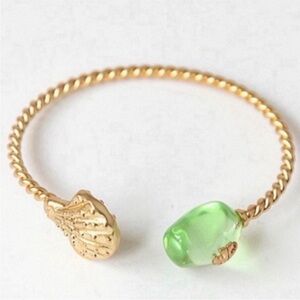 Tory Burch Gold and Green Twisted shell logo small open cuff Bracelet