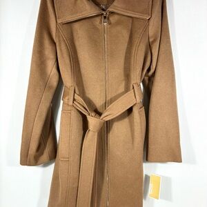 Michael Kors Full Zip Wool Blend Long Coat S XL Dark Camel NWT