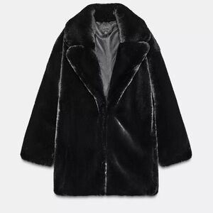 Zara Faux Fur Black Coat 1255/829 in size XL