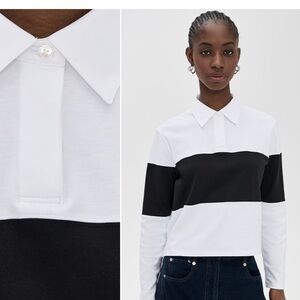 THEORY Crop Rugby Shirt – White/Black – Size M ✨