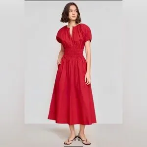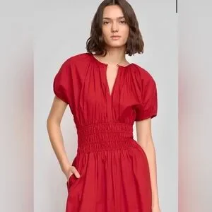 Modern Citizen Kyla Organic Cotton Red Midi Dress NWT 1X Feminine Summer