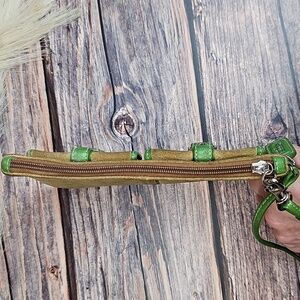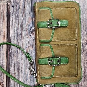 COACH VINTAGE TAN SUEDE & LIME GREEN LEATHER POCKET WRISTLET
