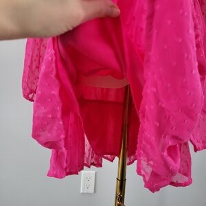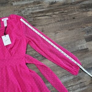 Brand new! Beautiful, flowy Japna dress with a lovely tiered skirt and sheer long sleeves. Smocking at the back of the waist provides some stretch. Dress body is lined. First picture shows the color best. Size M, please see photos for measurements.