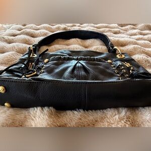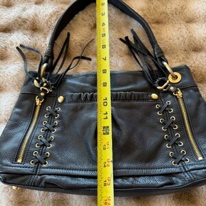 B. Makowsky leather hobo shoulder bag with gold hardware and lace-up