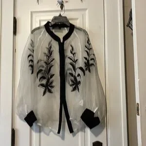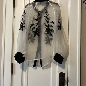 Black and white Embroidered sheer top