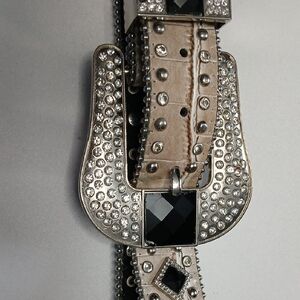 Nooona Western Silver and Black Studded Belt