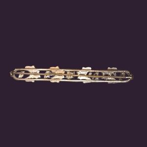 Beautiful Art Nouveau moonglow and rhinestone bar brooch with C clasp.