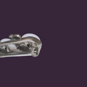 Vintage Silver Tone White Moonglow And Rhinestone Bar Brooch