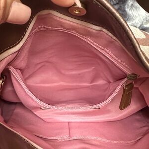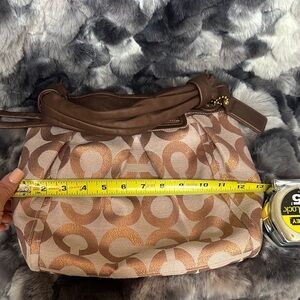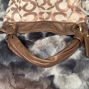 •Coach Signature Rose Gold Op Art Jacquard Fabric with Light Weight Bronze Leather Trim