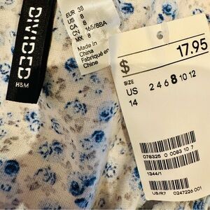 Effortless and feminine, this H&M Divided sundress is perfect for warm-weather days. Featuring a delicate blue floral print on soft 100% viscose, it offers a breezy, lightweight feel. The scoop neckline, sleeveless design, and gently gathered waist create a flattering, easy-to-wear silhouette. Wear it solo with sandals for a casual look, or layer with a denim jacket for a chic, laid-back vibe.