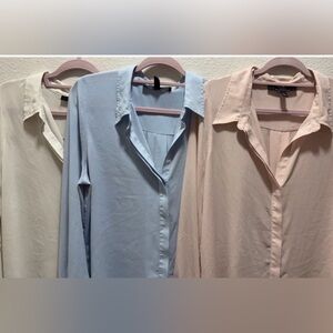 WHBM Set of 3 Button-Up Blouses Blue Pink Cream L