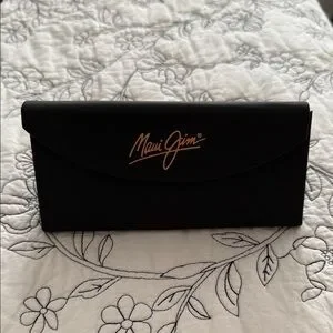 New Elegant black holder and sunglasses with Maui Jim logo. Ideal for eyewear protection.