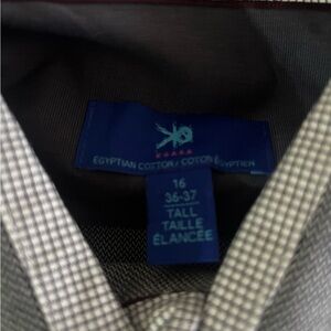 Elevate your wardrobe with this stylish Egara dress shirt in size 16, featuring a tall fit (36-37) and crafted from Egyptian cotton, offering both comfort and sophistication. This shirt is in good condition and ready to wear.