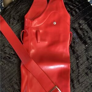 These bold red heeled boots feature a sleek design with a pointed toe and an angled heel, making them a standout addition to any wardrobe. Crafted from a smooth, leather-like material, they offer a classic silhouette that is both stylish and versatile. Perfect for making a statement, these boots are a must-have for any fashion-forward individual. Wear with or without covering! Covering is approximately 20 inches in height. Heel is approximately 3.5 inches high. Silver buckle and snaps.
