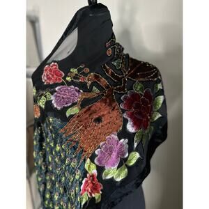 Burnout Velvet Floral Peacock Beaded Embellished Rectangle Scarf Wrap