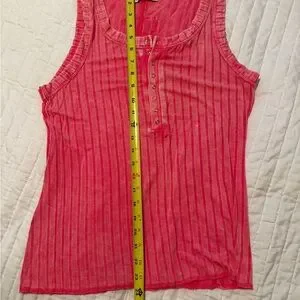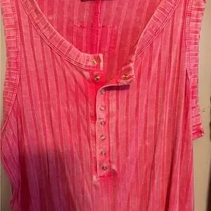You are getting a bundle of 2 tank tops! One green and one pink. Super soft and very stretchy. Stretchy, flexible true-to-size fit that flatters without feeling tight* Ribbed texture for softness and everyday style* Functional Henley buttons for a laid-back, sporty vibe. With its washed finish, flattering scoop neck, and functional Henley buttons, this ribbed tank is made for layering, lounging, and living in. The stretchy ribbed fabric hugs without squeezing, giving you that just-right fit whether you're pairing it with denim cutoffs, joggers, or tossing it under your favorite flannel.