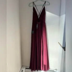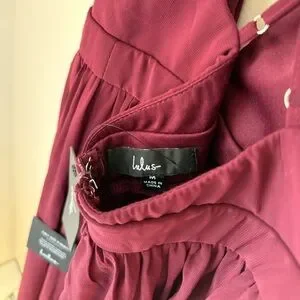 Lulu's NWT- Ballroom Bliss Burgundy Pleated Maxi Dress