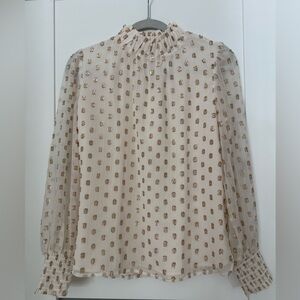 NWT Ann Taylor Loft High Neck Shimmer Polka Dot Long Sleeve Blouse - XS