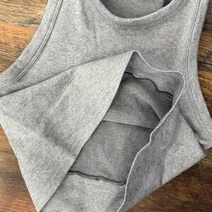 Chic heather gray crop top. Sleeveless design. Ideal for casual wear.