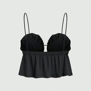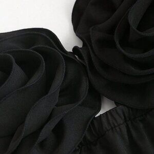Black Sexy Women's Hollow Out Front Tank Top With 3d Flower Decor