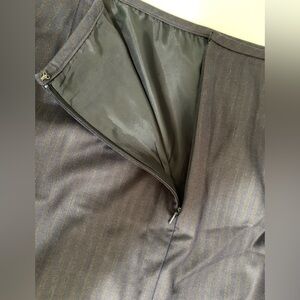 Keywords: pinstripe skirt, career wear, office attire, business casual, knee length, lined skirt, workwear, classic, tailored, professional, navy skirt, pencil silhouette, smart casual