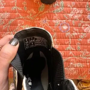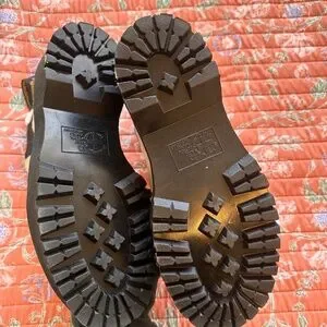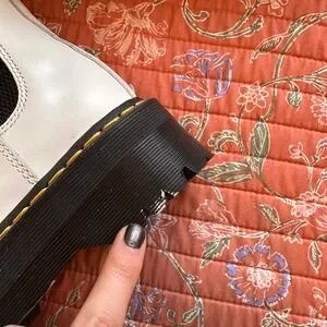 Ladies, size 8. White platform boots from Dr. Marten’s. A few small spots on bottoms, as pictured.