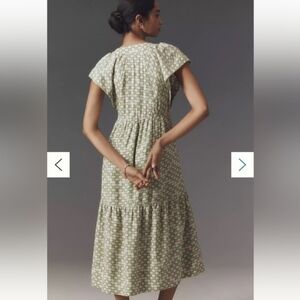 NWOT Anthropologie Renee Flutter Sleeve Linen Green Button Up Midi Shirt Dress