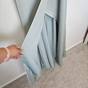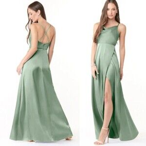 NWT Azazie Naomie Agave A-Line Cowl Neckline Side Slit Stretch Satin Dress, A14