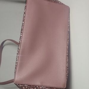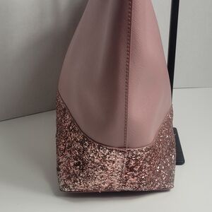Elegant pink tote with glitter base. Perfect for any occasion. Stylish and spacious. Has some signs of wear see pics of bottom corners , being reposhed in same condition , very clean inside , very cute tote