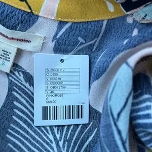 Beautiful Silence + Noise dress featuring a bold floral print in a soft peach base with navy, mustard, and light blue accents. Designed with a flattering V-neckline, functional button front, and easy short sleeves. Lightweight and breathable, making it perfect for warm weather.