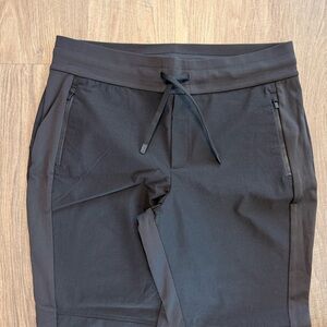 I bought these pants a few years back and wore them a few times. I don’t recall the style of these, but they aren’t for cold weather. These would be perfect for spring and summer. They are made of two different materials: the material on the sides of the legs are stretchy, making the pants fit so comfortably and move with you. The pants have drawstrings and side zipper pockets.