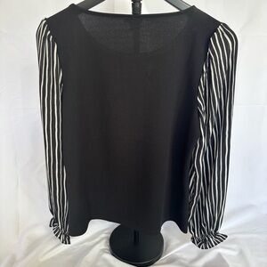 Ann Taylor Elegant Black Top with White Striped Sheer Sleeves Women’s Small