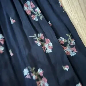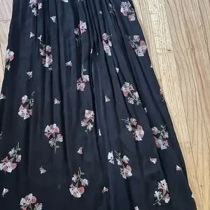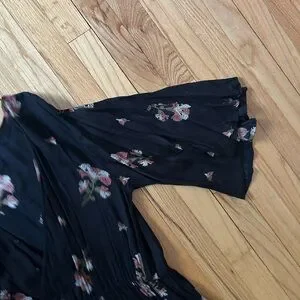 Chic black maxi dress with floral design. Features flowing sleeves and a flattering fit.