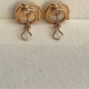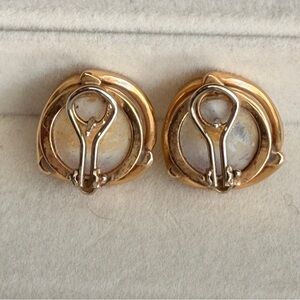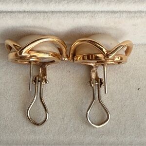 Exceptional vintage Mabe pearl earrings crafted in solid 14K gold. Each luminous domed pearl is securely nestled within an elegant, sculptural gold setting that wraps the pearl in flowing, organic curves — a timeless design with a refined mid-century feel.