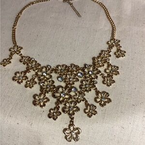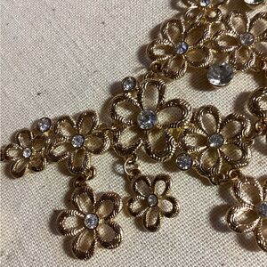 Vintage cascading daisies Gold Floral Necklace center rhinestones