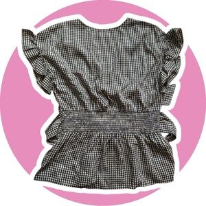 Chic and stylish, this black and white gingham top is perfect for any occasion. Featuring a flattering V-neck and ruffled sleeves, it adds a touch of elegance to your wardrobe.