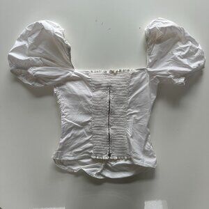 Reformation Radish Cotton Ruched Puff Sleeve White Top 6