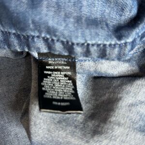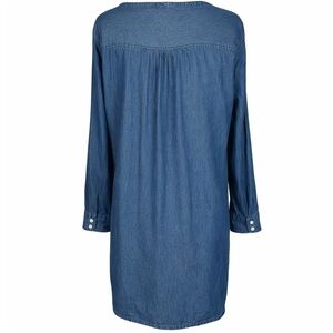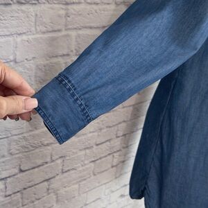 Designed with long sleeves and a relaxed, easy silhouette, this piece is perfect for year-round styling. Wear it loose for a casual, laid-back look or belt it at the waist for a more defined shape. The breathable chambray fabric offers the look of denim with a lightweight, comfortable feel.