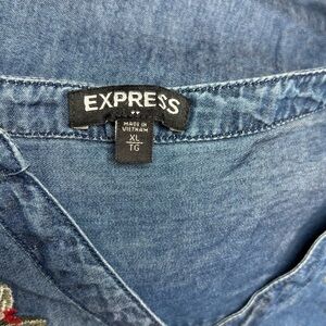 Express Chambray Embroidered Popover Dress Denim Western Boho XL