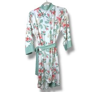 FN Flora By Flora Nikrooz Mint Floral Green Soft Buttery Wrap House Robe Small
