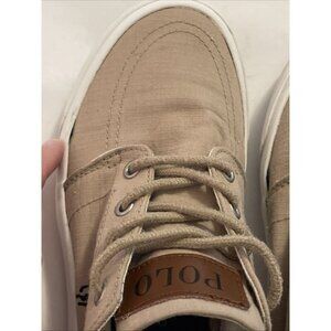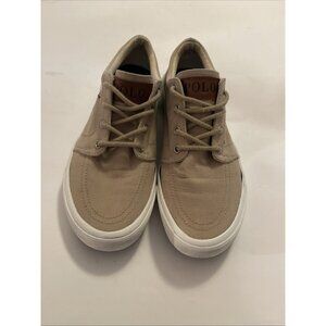 Boys Tan Polo Ralph Lauren Lace Up Canvas Sneaker Dress Shoes Size 4Y Logo